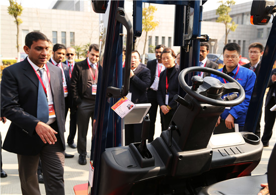 合力全球代理商参观合力产品